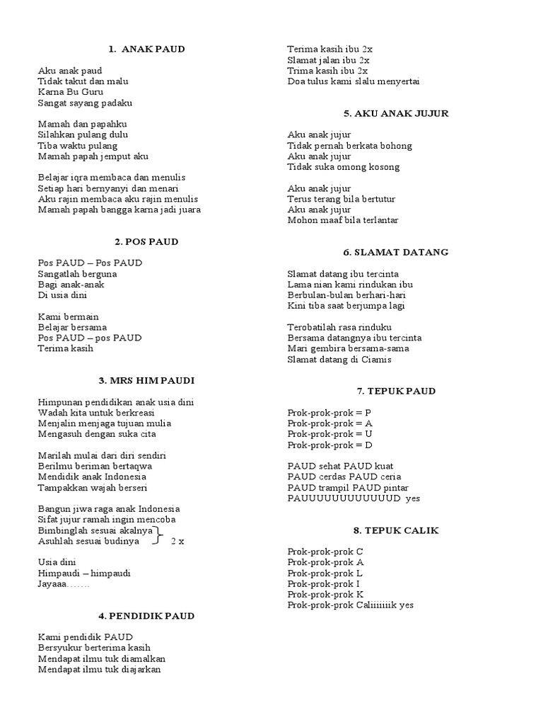 Kumpulan Tepuk Dan Lagu Anak Tk Paud Bu Guru Siti